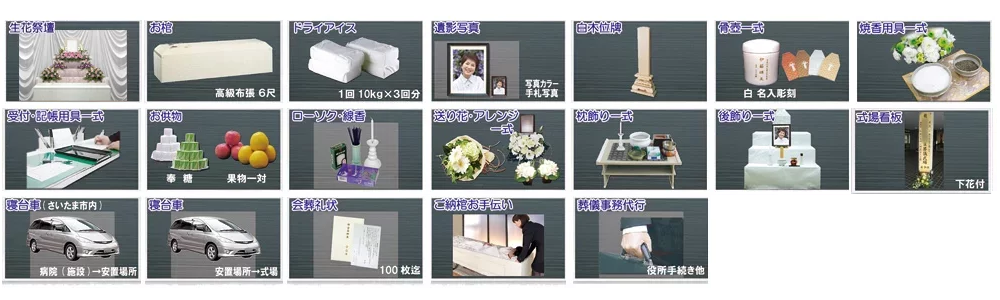 小さな花祭壇プラン 低予算で花祭壇を希望される方に向けた当社のオリジナル花祭壇プランです。 プラン内容 価格 ¥450,000~(税込¥495,000~) ※お布施・火葬料・お食事代・返礼品は別途となります。 プランに含まれるもの 選べる花祭壇